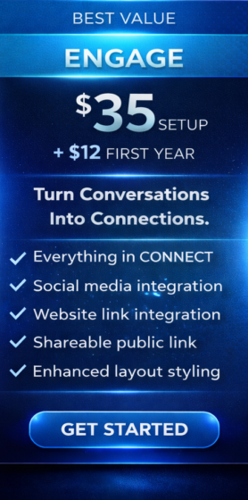 Whether shared digitally, printed with QR on business collateral, or saved to a home screen, MyBizFind digital business cards help professionals, teams, and organizations convert every interaction into a connected opportunity.